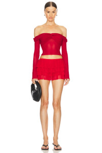 - 82% nylon 18% spandex - Made in China - Machine wash - Tiered ruffles - Mesh fabric - style runs large, size down - Shorts measure approx 10.5" in length - Revolve Style No. NKAM-WF17 - Manufacturer Style No. ST2249MS520946