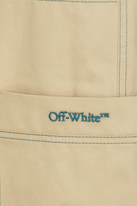 - 100% cotton - Made in Italy - Machine wash - Zip fly with hook and bar closure.4-pocket styling with dual cargo pockets - Structured twill fabric with contrast stitching and embroidered OFF-WHITE logo.24" at the knee narrows to 21" at the leg opening - Revolve Style No. OFFF-MP89 - Manufacturer Style No. OMCF047S25FAB0016157