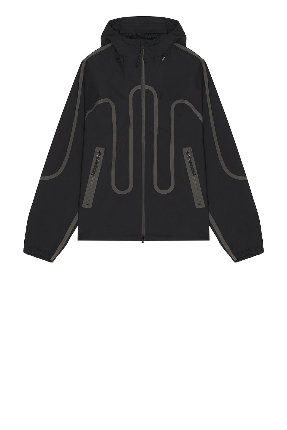 - On x Ikon 43% polyamide 30% polyurethane 27% polyester - Machine wash - Two-way front zip closure - Side zip pockets - Pull-cord hoodie - Mesh lining - Lightweight ripstop fabric - Revolve Style No. ONF-MO36 - Manufacturer Style No. 1UF30080553