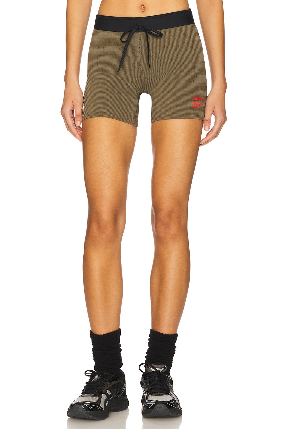 - On x The Loop & Pleasures Self: 75% recycled polyester 19% recycled polyamide 6% elastane Lining: 82% recycled polyamide 18% elastane - Machine wash - Elastic waistband with interior drawstring closure - Interior pockets - Logo detailing - Ribbed jersey activewear fabric - Shorts measure approx 14" in length - Revolve Style No. ONR-WF11 - Manufacturer Style No. 1WF10600153