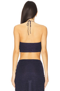 - Self: 64% polyamide 36% metallic fibers Lining: 82% polyamide 18% elastane - Made in Italy - Hand wash - Halterneck tie closure - Shoulder strap rosette accents - Lightweight metallic jersey fabric Item not sold as a set - Revolve Style No. OSSE-WS36 - Manufacturer Style No. FFS249