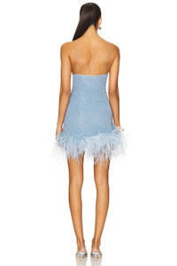 - Self: 64% polyamide 36% metallic fibers Lining: 82% polyamide 18% elastane Contrast Fabric: 100% real feathers - Hand wash cold - Fully lined - Pull-on styling - Ostrich feathered trim - Midweight jersey fabric - Revolve Style No. OSSE-WD51 - Manufacturer Style No. LDF257
