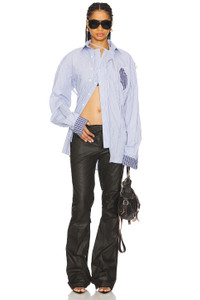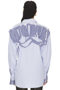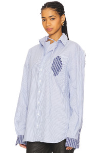 - 95% cotton 4% polyamide 1% elastane - Made in Greece - Machine wash cold - Dual front button closures - Midweight poplin fabric with distressed applique detail at front patch pocket - Intentionally distressed logo applique detail at back - Tie detail at inner neckline - Contrast button cuffs - Revolve Style No. OTTR-WS15 - Manufacturer Style No. 11140031102