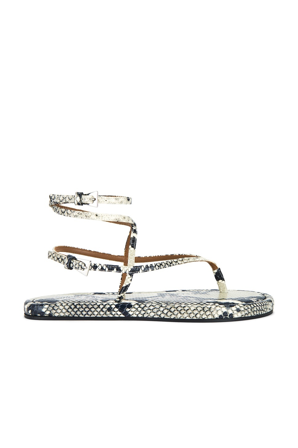- Snake embossed leather upper with leather sole - Dual silver-tone ankle buckle closures - Leather lining - Cushioned leather footbed - Slanted square toe - Revolve Style No. PRTX-WZ59 - Manufacturer Style No. PX1644