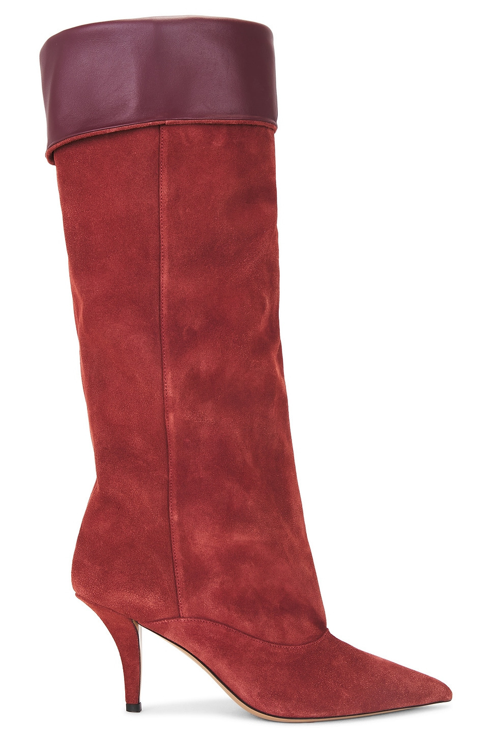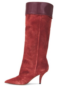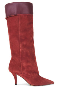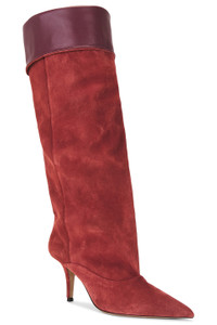 - Calf suede upper with leather sole - Pull-on styling - Leather footbed and lining - Foldover styling at shaft - Pointed toe - Approx 75mm/ 3 inch heel Approx 445mm/ 17.5 inch shaft Shaft measures approx 20.41" in circumference - Revolve Style No. PRTX-WZ78 - Manufacturer Style No. PX1685