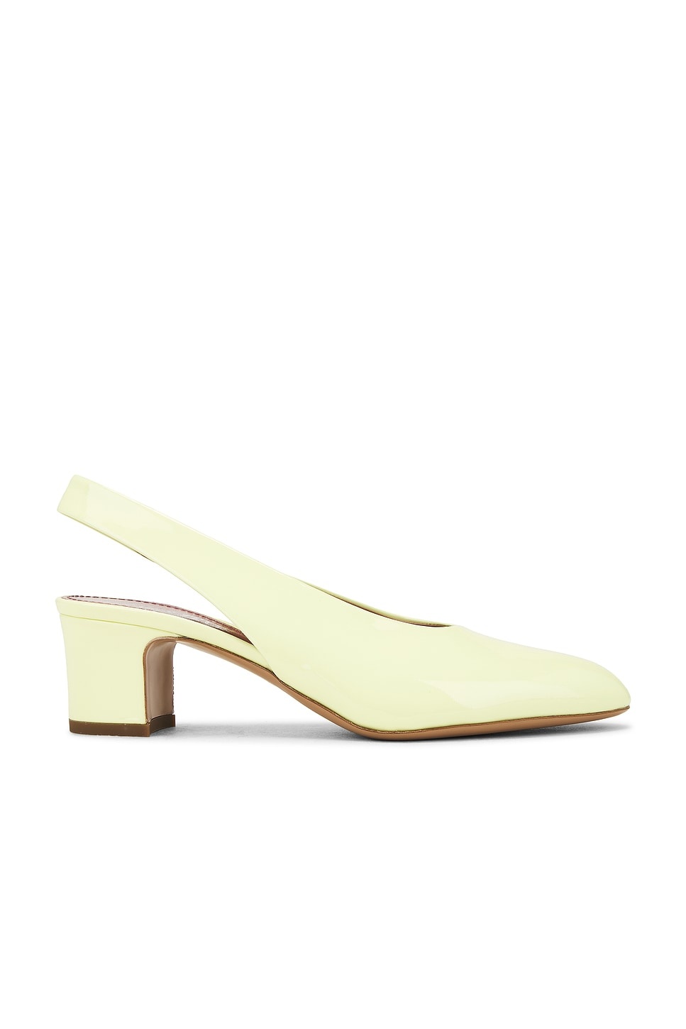 - Patent leather upper with leather sole - Made in Italy - Sling-back styling - Leather footbed and lining - Almond toe with block heel - Approx 50mm/ 2 inch heel - Revolve Style No. PRTX-WZ46 - Manufacturer Style No. PX1547