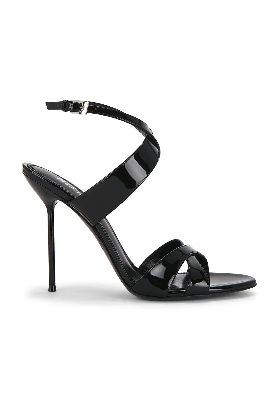 - Patent leather upper with leather sole - Wrap around strap with buckle closure - Leather lining with padded leather footbed - Almond toe - Stiletto heel - Strappy vamp design - Approx 110mm/ 4.3 inch wedge - Revolve Style No. PRTX-WZ113 - Manufacturer Style No. PX1817