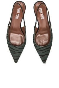 - Leather and printed calf hair upper with leather sole - Slingback styling - Leather lining and footbed - Pointed toe - Stiletto heel - Approx 50mm/ 2 inch heel - Revolve Style No. PRTX-WZ105 - Manufacturer Style No. PX1635