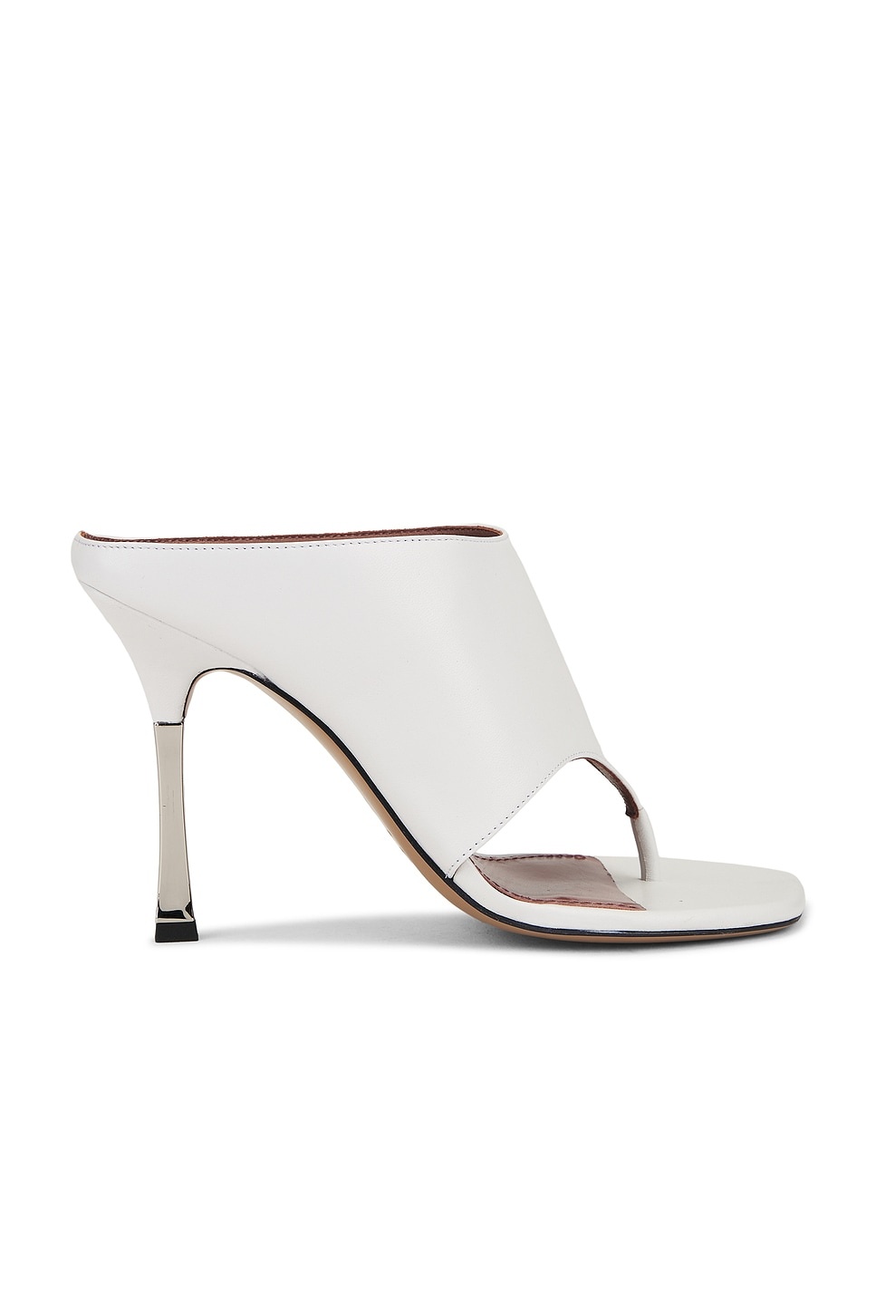 - Leather upper with leather sole - Slip-on styling - Cushioned leather footbed and lining - Metallic silver-tone heel - Square toe - Approx 100mm/ 4 inch heel - Revolve Style No. PRTX-WZ63 - Manufacturer Style No. PX1603