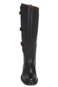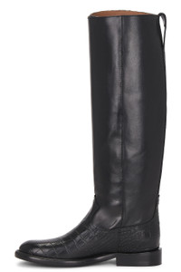 - Smooth and croc embossed leather upper with leather sole - Pull-on styling - Leather footbed and lining - Buckled strap detail along shaft - Back pull-tab - Approx 25mm/ 1 inch heel Approx 381mm/ 15 inch shaft Opening measures approx 13.34" in circumference - Revolve Style No. PRTX-WZ89 - Manufacturer Style No. PX1720
