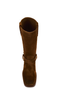 - Suede upper with leather sole - Pull-on styling - Leather footbed and lining - Dual side pull-tabs - Boot harness detail with silver-tone metal hardware - Square toe with wooden block heel - Approx 45mm/ 1.75 inch heel Approx 286mm/ 11.25 inch shaft Shaft measures approx 12.56" in circumference - Revolve Style No. PRTX-WZ75 - Manufacturer Style No. PX662