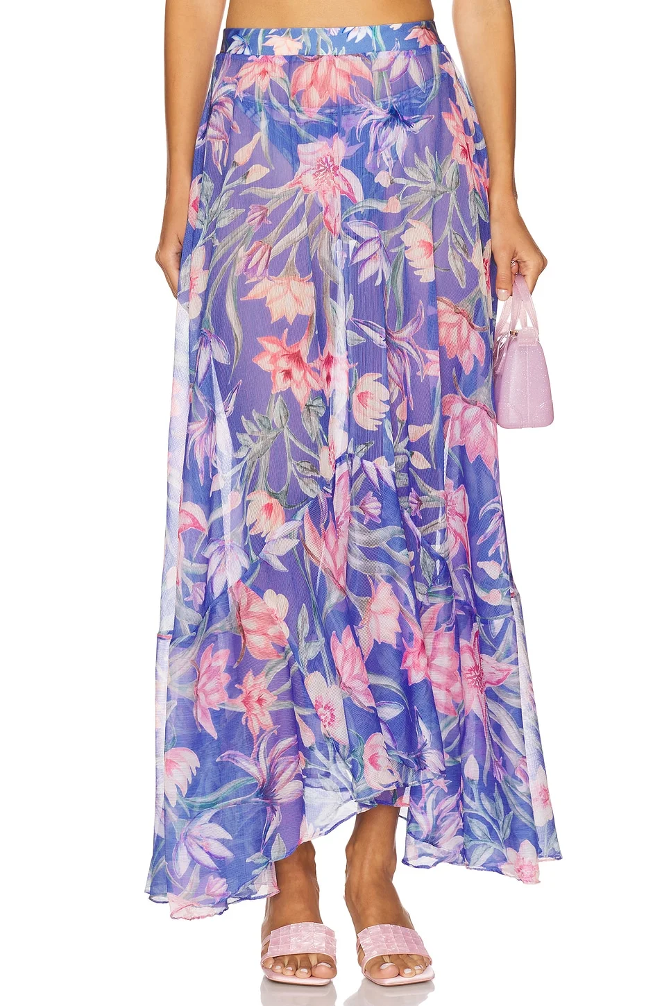 - Self 1: 82% polyamide 18% elastane Self 2: 100% polyester - Hand wash - Unlined - Elastic waistband - Lightweight chiffon fabric - Garment is made with a semi-sheer fabric, undergarments can show through - Skirt measures approx 36" in length - Revolve Style No. PBTO-WQ86 - Manufacturer Style No. SAL32436
