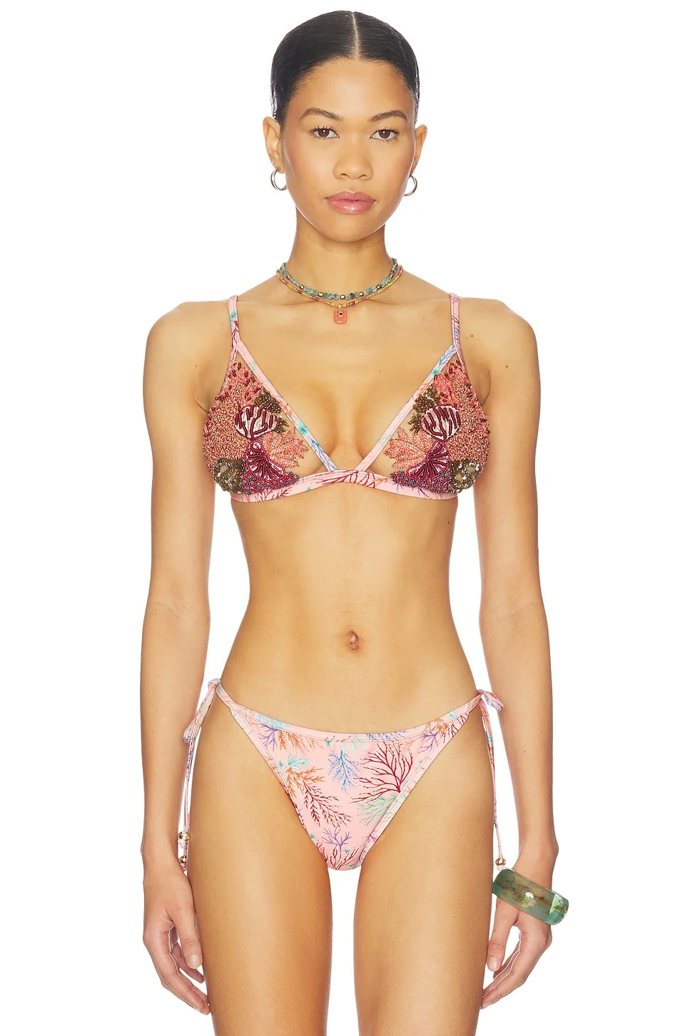 - 82% polyamide 18% elastane - Made in Brazil - Hand wash - Adjustable straps with back latch closure - Mesh unpadded cups with beaded details and swimwear fabric trim - Item not sold as a set - Revolve Style No. PBTO-WX289 - Manufacturer Style No. TOB33097