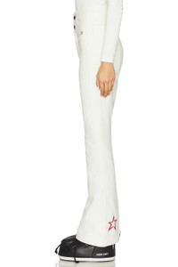 - Self 1: 80% nylon 20% spandex Self 2: 94% polyester 6% spandex Lining: 100% recycled polyester - Machine wash - Zip fly with snap button closure - Front zip pockets - Snowcatcher hem - Heavyweight active ski fabric - Item not sold as a set.22" at the leg opening - Revolve Style No. PMOM-WP53 - Manufacturer Style No. W30012231707