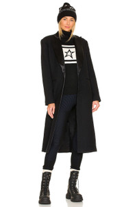 - 100% extra fine merino wool - Made in China - Hand wash - Button closure at shoulder and collar - Foldover turtleneck - Ribbed cuffs and hem - Intarsia knit fabric - Revolve Style No. PMOM-WK9 - Manufacturer Style No. W30013501703
