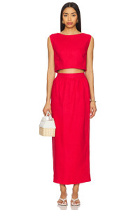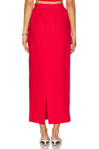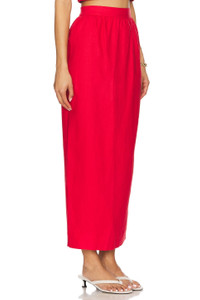 - Self: 100% linen Lining: 100% cotton - Made in China - Dry clean only - Fully lined - Elastic waistband with hidden side zip closure - Midweight linen fabric - Item not sold as a set - Waist to shortest hem measures approx 19" and to longest hem approx 38.5" in length - Revolve Style No. PSSE-WQ17 - Manufacturer Style No. PS1391-RED