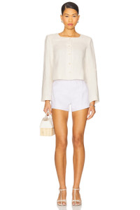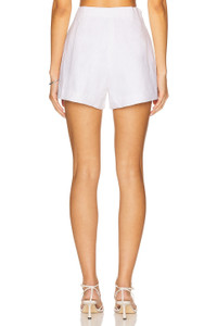 - Self: 100% linen Lining: 100% cotton - Hand wash cold - Hidden side zip closure with button closure at side - Midweight linen fabric - Shorts measure approx 14" in length - Revolve Style No. PSSE-WF17 - Manufacturer Style No. PS1660-IVO