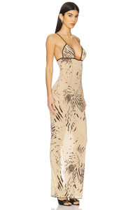 - 66% polyester 34% elastane - Made in China - Machine wash - Unlined - Pull-on styling - Adjustable shoulder straps - Lightweight mesh fabric Garment is intentionally sheer, undergarments will show through - Please note undergarment not included - Revolve Style No. PGIR-WD83 - Manufacturer Style No. SS25FLDR003