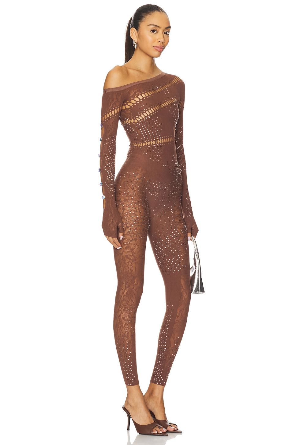 IVY LONG RHINESTONE JUMPSUIT OLD MONEY BROWN