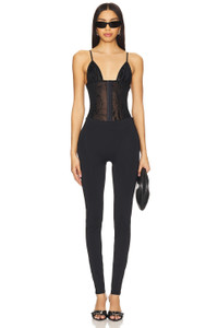 - 63% polyamide 37% elastane - Made in China - Machine wash - Pull-on styling - Removable hip and butt padding - Midweight jersey fabric.11" at the knee narrows to 8" at the leg opening - Revolve Style No. PGIR-WP13 - Manufacturer Style No. SS25DCSW009