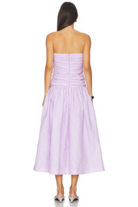 - Midweight textured crepe textile - Imported - Dry clean recommended - Fully lined - Hidden back zipper closure - Boned bodice - Midweight textured crepe fabric - Revolve Style No. RGIL-WD44 - Manufacturer Style No. 25PFRG62262.LIL