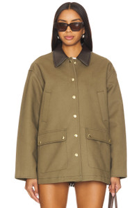 - Self: 100% cotton Combo: 100% polyester Lining: 51% viscose 49% polyester - Made in Vietnam - Dry clean only - Front snap button closure - Front and breast pockets - Twill fabric - Revolve Style No. RGBR-WO132 - Manufacturer Style No. WAW24F20167516