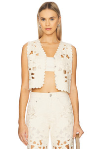 Coralie Cutout Denim Vest Lightweight Rigid in Ecru Floral Cutout