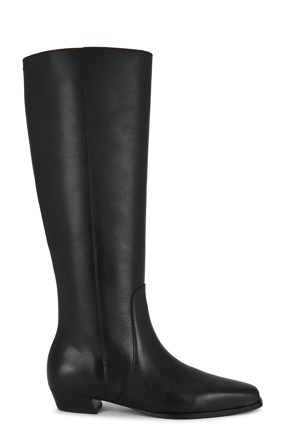 - Leather upper with leather sole - Made in Vietnam - Pull-on styling with side zipper closure - Pointed square toe - Angled wedge heel - Approx 34.29 mm/ 1.35 inch heel Approx 431.8 mm/ 17 inch shaft Shaft measures approx 16" in circumference - Revolve Style No. RGBR-WZ341 - Manufacturer Style No. RP4C25H514L
