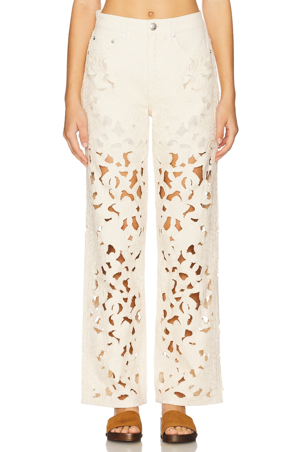 Logan Wide-Leg Jeans Lightweight Rigid in Ecru Floral Cutout