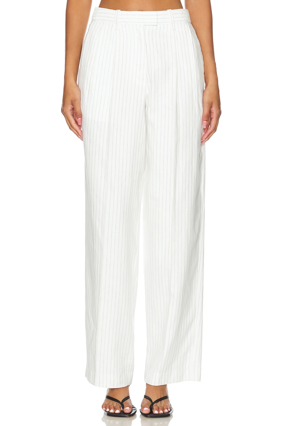 - Self: 58% cotton 42% linen Pocket Lining: 56% polyester 44% cotton - Made in Vietnam - Dry clean only - Zip fly with hook and bar closure.4-pocket design - Linen fabric.23" at the knee narrows to 19" at the leg opening - Revolve Style No. RGBR-WP138 - Manufacturer Style No. WAW24P7011LI11