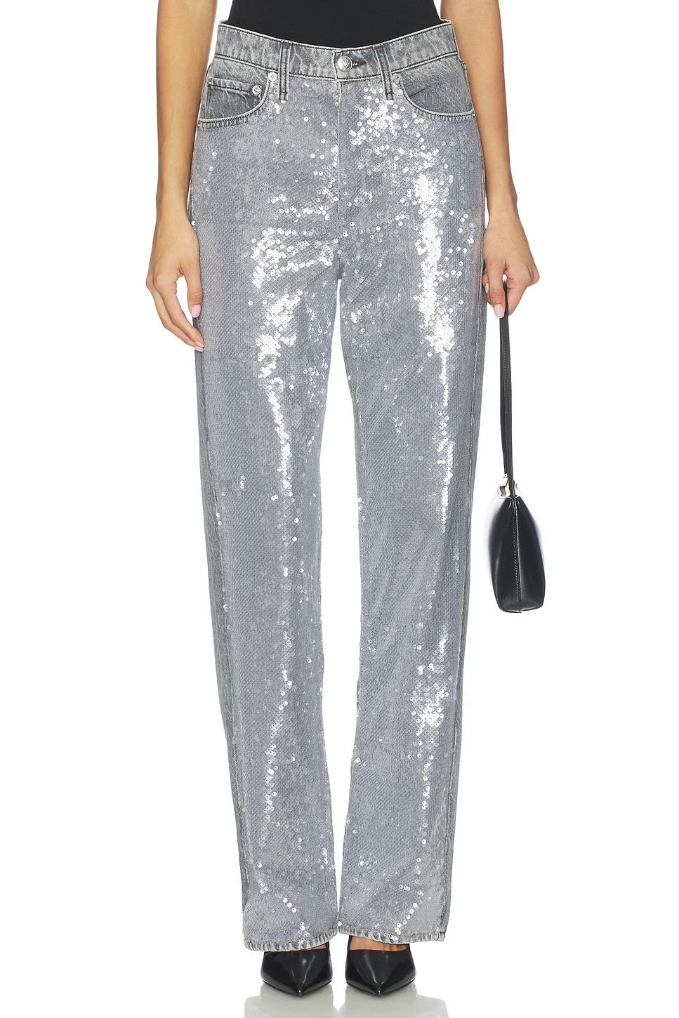 Shea Relaxed Straight Jeans Lightweight Rigid in Steele Sequins