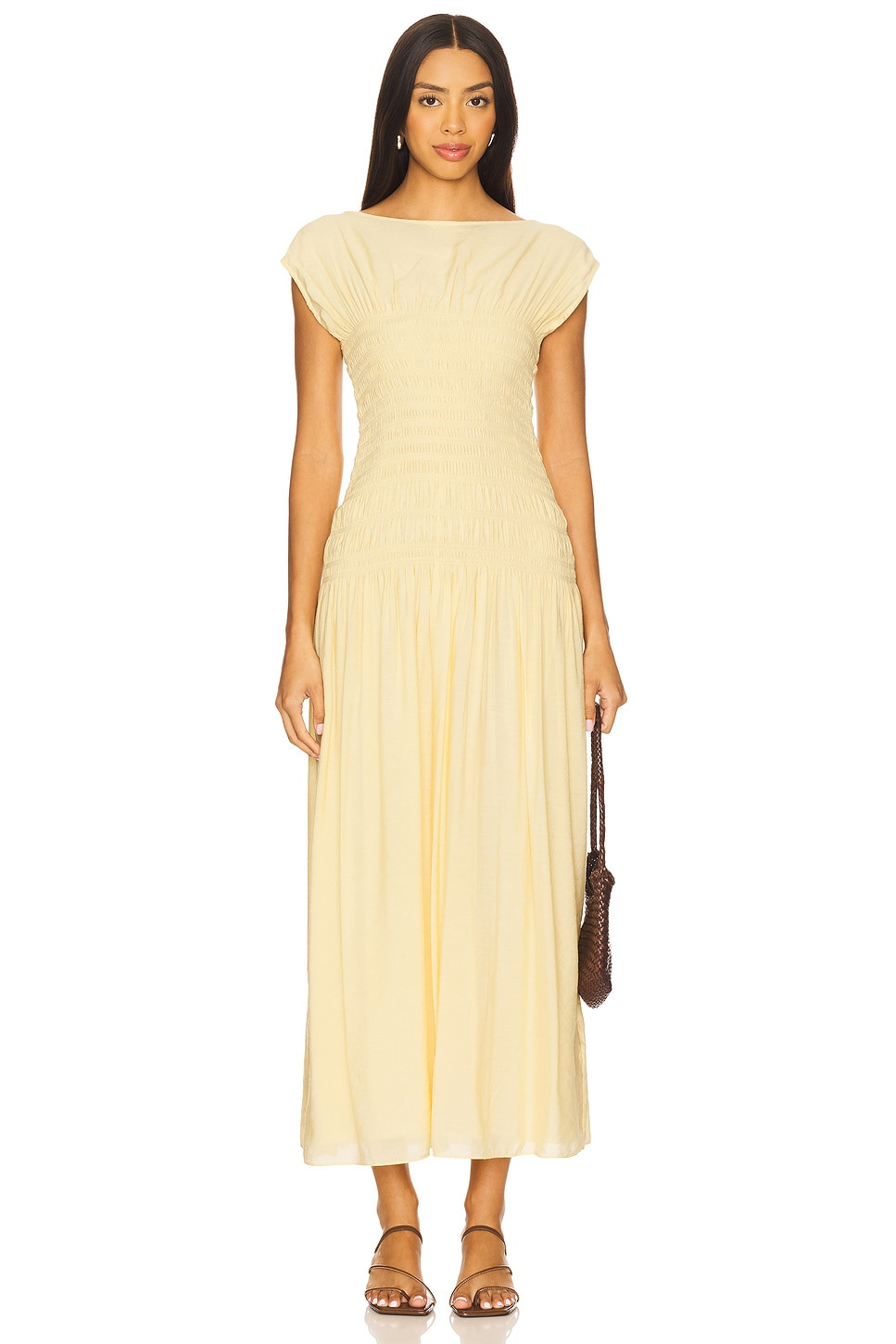 - 76% viscose 24% nylon - Machine wash - Unlined - Pull-on styling - Smocked fabric design at bodice - Poplin fabric - Revolve Style No. RGBR-WD129 - Manufacturer Style No. WAW25P3002LR02