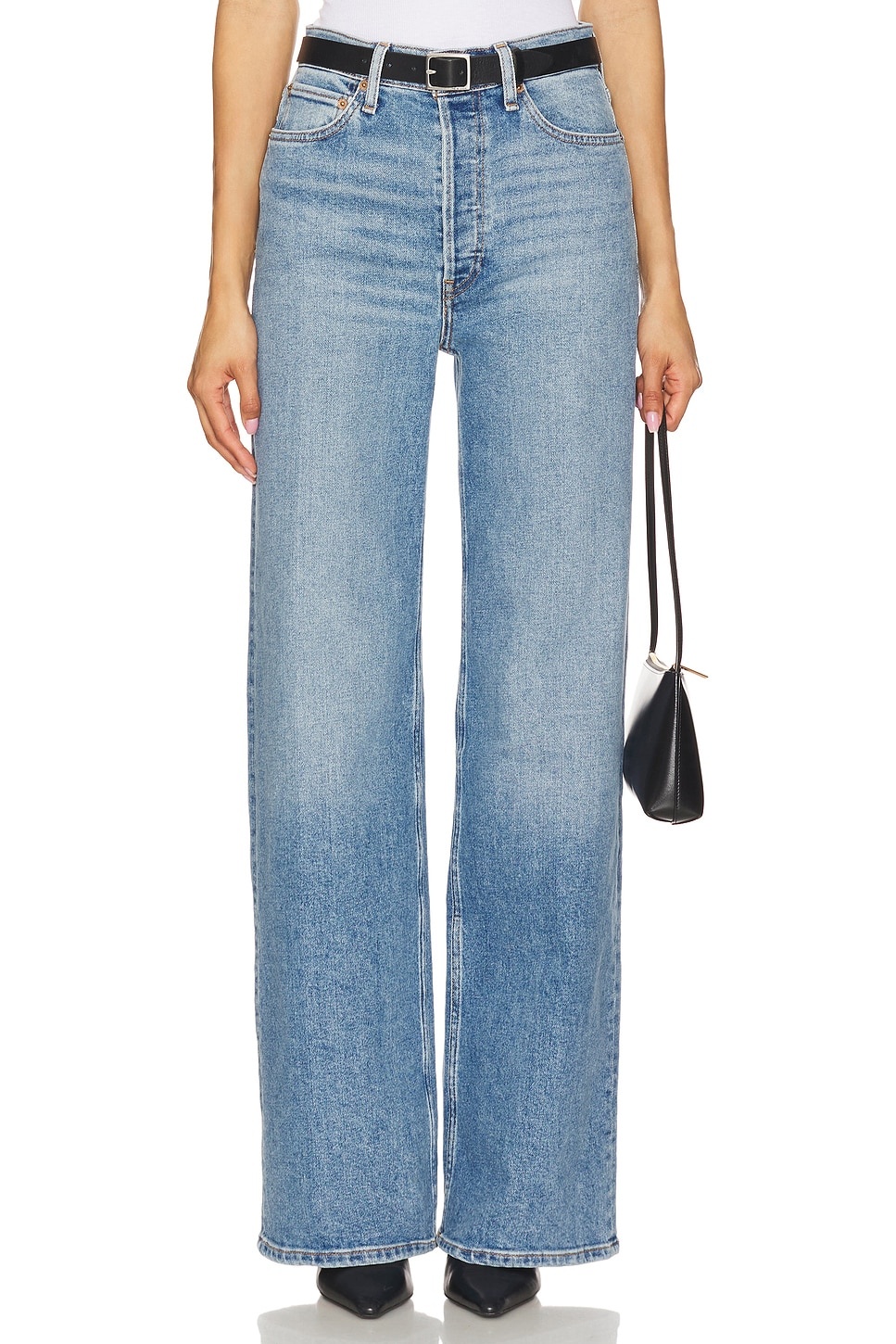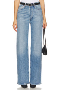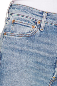 - Self: 96% cotton 3% elasterell-p 1% spandex Lining: 65% polyester 35% cotton - Machine wash - Button fly closure.5-pocket styling - Back logo patch - Intentional fading and light whiskering - Midweight denim fabric.20" at the knee breaks to 20.5" at the leg opening - Revolve Style No. REDR-WJ355 - Manufacturer Style No. 523-03W7UHRWL