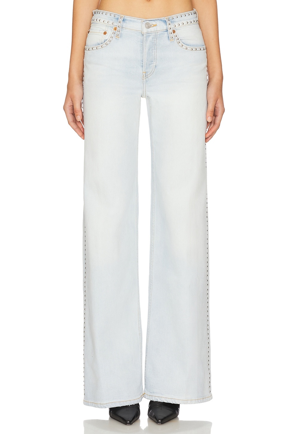 - Self: 76% cotton 20% recycled cotton 3% elastomultiester 1% spandex Lining: 65% polyester 35% cotton - Machine wash cold - Button fly closure.5-pocket styling - Silver-tone hardware studded trim - Stretch denim - Each RE/DONE style is unique - Due to the use of reclaimed vintage fabrics, details and colors vary throughout to ensure that each piece is uniquely its own - .20.5" at the knee breaks to 22" at the leg opening - Revolve Style No. REDR-WJ353 - Manufacturer Style No. 192-03WMRWDCO