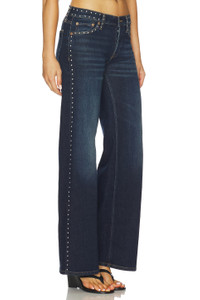 - Self: 96% Cotton 3% Polyester 1% Elastane Lining: 65% Polyester 35% Cotton - Dry clean only.4-button fly closure.5-pocket styling - Logo patch at back waist - Embellished silver studding.20" at the leg opening - Revolve Style No. REDR-WJ371 - Manufacturer Style No. 190-03WSTMRWL