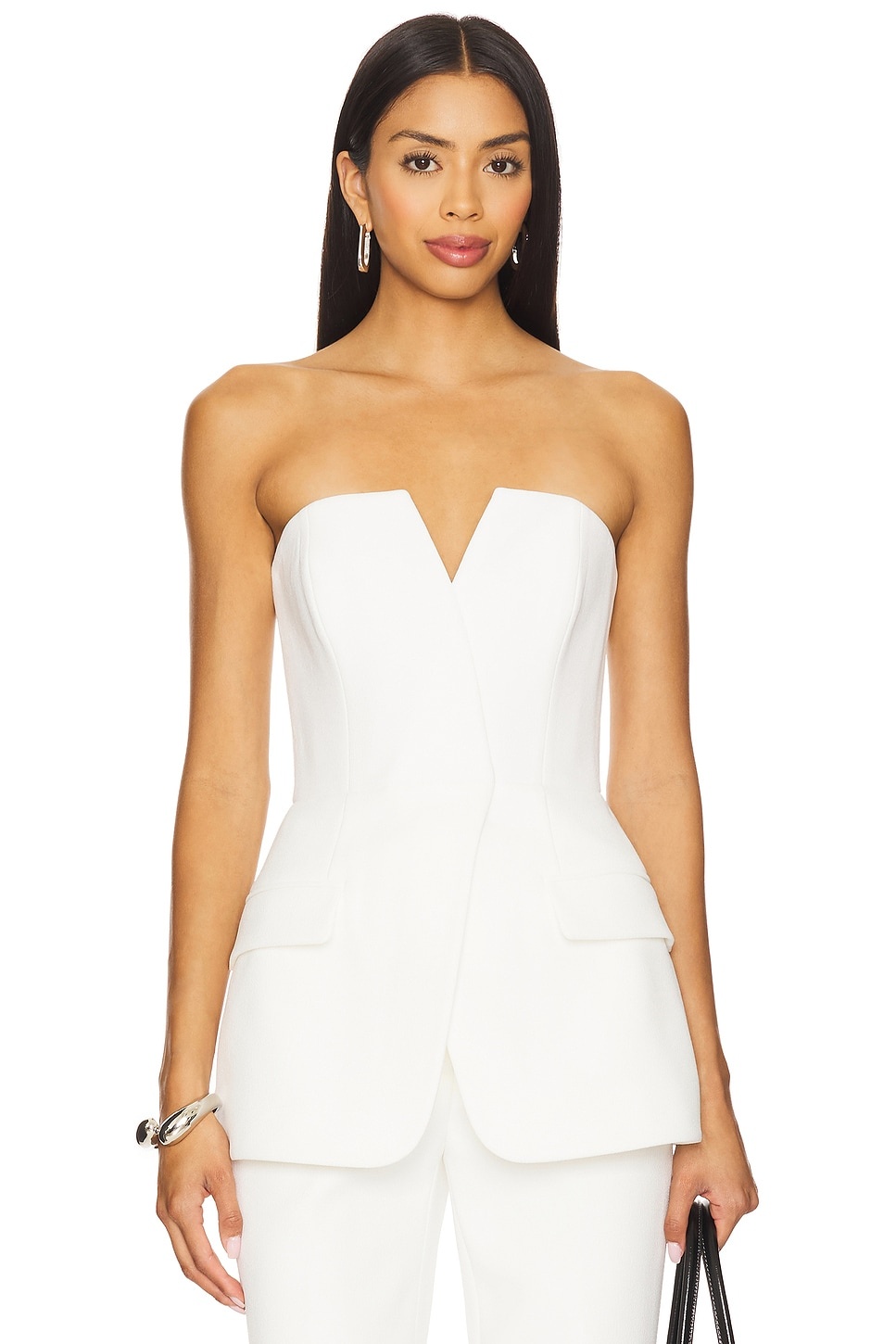 - Self: 98% polyester 2% elastane Lining: 93% polyester 3% elastane - Dry clean only - Hidden back zipper closure - Boned design at bodice - Front faux flap pockets - Textured crepe fabric - Item not sold as a set - Revolve Style No. REBR-WS8 - Manufacturer Style No. RVBR-2534