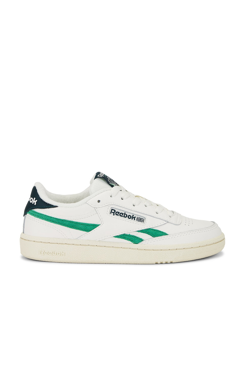 - Leather upper with rubber sole - Lace-up front - Reebok logo at outer panels - Lightly padded raw-cut foam tongue with logo patch - Padded low-cut collar with printed Reebok logo at back counter - Revolve Style No. REER-WZ44 - Manufacturer Style No. 100229819