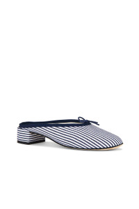 - Canvas upper with leather sole - Slip-on styling - Leather footbed - Bow at vamp - Almond toe - Approx 40mm/ 1.5 inch heel - Revolve Style No. RPPO-WZ20 - Manufacturer Style No. V4183STRP851