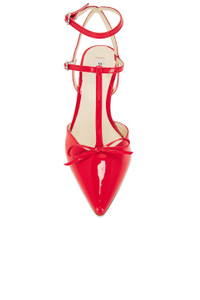 - Patent leather upper with leather sole - Made in Spain - Ankle buckle closure - Leather footbed and lining - Bow at vamp - Pointed toe - Approx 65mm/ 2.5 inch heel - Revolve Style No. RPPO-WZ12 - Manufacturer Style No. V4212