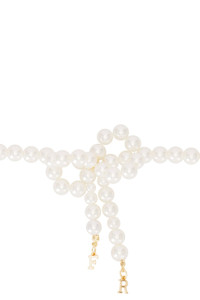 - Faux pearl belt with gold-tone metal - Made in China - Lobster clasp closure - Bow detail - OS measures approx 27.5" in length with a 8" extender - Revolve Style No. ROFR-WA15 - Manufacturer Style No. HL25-10793-ACC