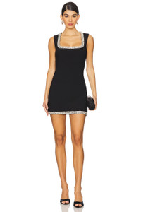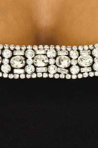 - Self: 95% polyester 5% spandex Lining: 92% polyester 8% spandex - Made in China - Hand wash - Fully lined - Hidden back zip closure - Embellished rhinestone trim - Heavyweight crepe fabric - Revolve Style No. ROFR-WD874 - Manufacturer Style No. HL25-10812