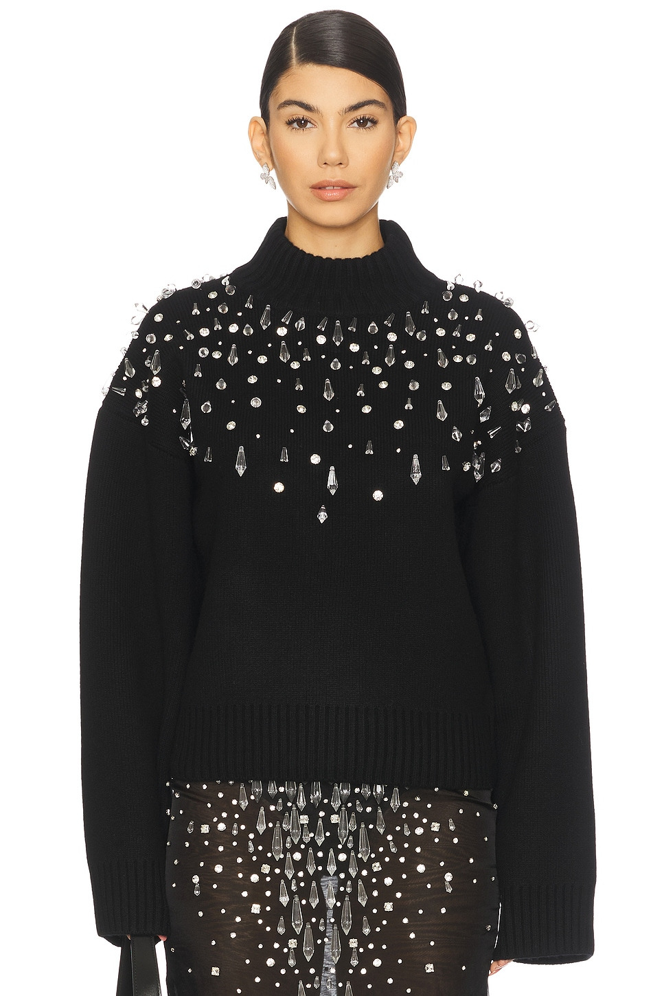 - 90% wool 10% cashmere - Made in China - Hand wash - Pull on styling - Gemstone embellishments throughout - Midweight knit textile - Revolve Style No. ROFR-WK36 - Manufacturer Style No. HL25-10548