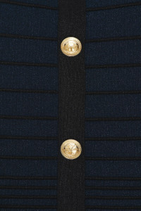- 60% rayon 32% nylon 5% metallic 3% spandex - Made in China - Dry clean only - Unlined - Hidden back zipper closure - Faux front pockets and button closure - Ponte fabric with metallic threading - Revolve Style No. ROFR-WD847 - Manufacturer Style No. FW24-9695
