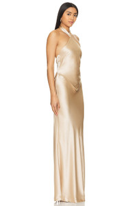 - Self: 76% acetate 24% polyester Lining: 97% polyester 3% spandex - Made in China - Dry clean only - Partially lined - Hidden back zipper closure with halter neck tie - Revolve Style No. ROFR-WD716 - Manufacturer Style No. PF23-7229