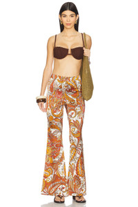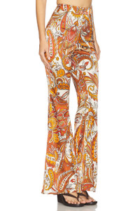 - 96% viscose 4% spandex - Dry clean only - Hidden side zipper closure - Satin fabric.16" at the knee breaks to 36" at the leg opening - Revolve Style No. ROFR-WP70 - Manufacturer Style No. R-SS25-11403-14