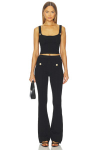 - Self: 60% Rayon 2% Nylon 5% Metallic 3% spandex - Dry clean or hand wash - allover metallic detailing - Pull-on styling - Front gold Martini buttons - Flared style Bottoms - Waist belt.46" at the leg opening - Revolve Style No. ROFR-WP74 - Manufacturer Style No. R-SS25-11148-14