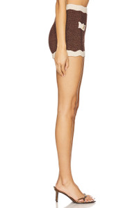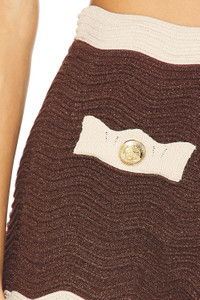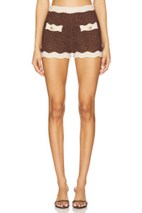 - 60% rayon 32% nylon 3% spandex 5% metallic fibers - Made in China - Dry clean only - Pull-on styling - Front faux gold-tone button pockets - Midweight metallic knit fabric - Item not sold as a set - Shorts measure approx 12" in length - Revolve Style No. ROFR-WF66 - Manufacturer Style No. R-SS25-11142-15