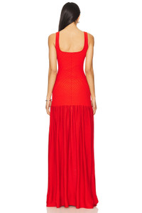 - 60% rayon 32% nylon 5% metallic 3% spandex - Hand wash cold - Unlined - Pull-on styling - Scoop neck - Drop-waist - Midweight ribbed knit fabric with metallic threading - Revolve Style No. ROFR-WD927 - Manufacturer Style No. R-SS25-11252-17