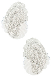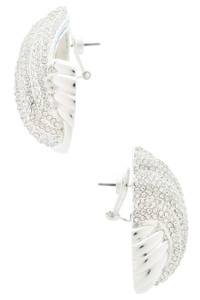 - 60% brass casting, 38% glass stone, 2% cubic zirconia - Made in China - Post-back earring closure - Pave / crystal embellishment overlay - all same - Measures approx 1.77" H x 1.2" W - Revolve Style No. ROFR-WL58 - Manufacturer Style No. R-FW25-11938-00
