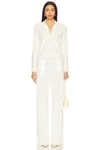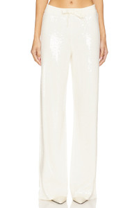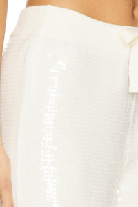 - 70% cotton 30% wool - Made in China - Hand wash - Elastic waistband with drawstring - Lightweight sequin embellished fabric - Item not sold as set.21" at the knee and 21" at the leg opening - Revolve Style No. ROFR-WP68 - Manufacturer Style No. HL25-10623